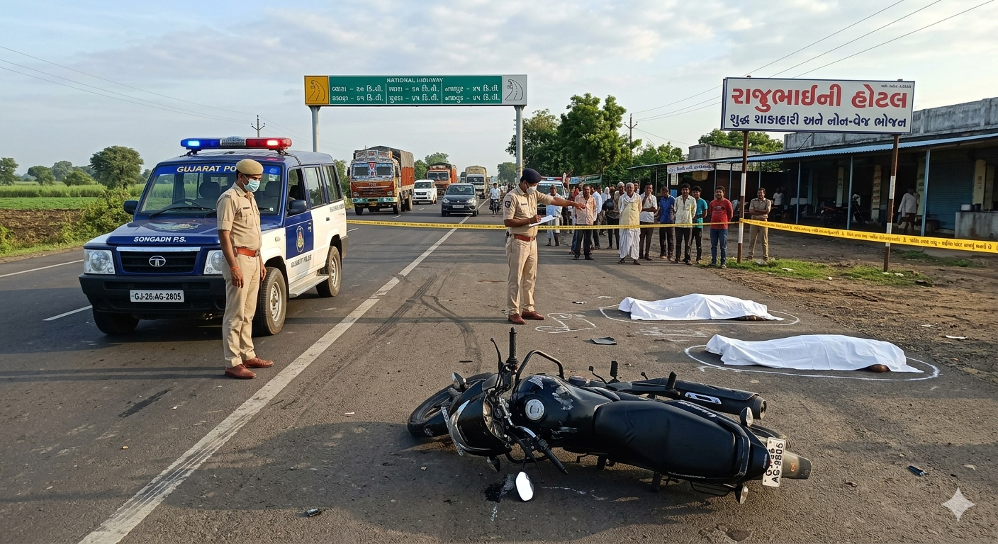 વિગતો અનુસાર મૂળ નર્મદા જિલ્લાના સાગબારા તાલુકાના બોદવાવ ગામનો રહીશ અરવિંદભાઈ વનકરભાઈ વસાવા પોતાની યુનિકોર્ન મોટરસાયકલ નંબર GJ-26-AG-2805 પર બે મહિલાઓ સાથે પસાર થઈ રહ્યો હતો. સવારે કોઈ અજાણ્યા વાહન ચાલકે ગફલતભરી રીતે વાહન હંકારી તેમની મોટરસાયકલને જોરદાર ટક્કર મારી હતી.આ અકસ્માતમાં મોટરસાયકલ ચાલક અરવિંદભાઈ વસાવા અને પાછળ બેસેલી 13 વર્ષીય કિશોરી પ્રતિગ્યાબેન દિલીપભાઈ વસાવા (રહે.મહુપાડા) ને ગંભીર ઈજાઓ પહોંચતા બંનેનું ઘટનાસ્થળે જ મોત નીપજ્યું હતું.